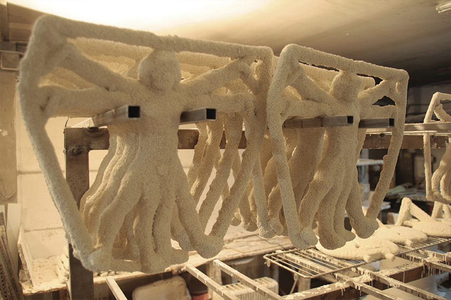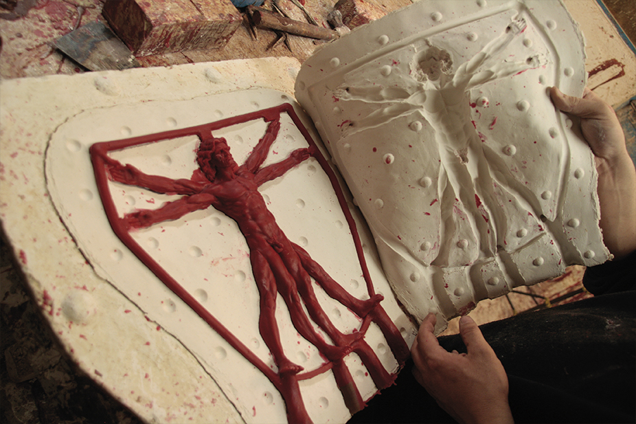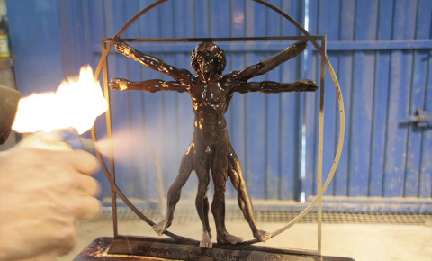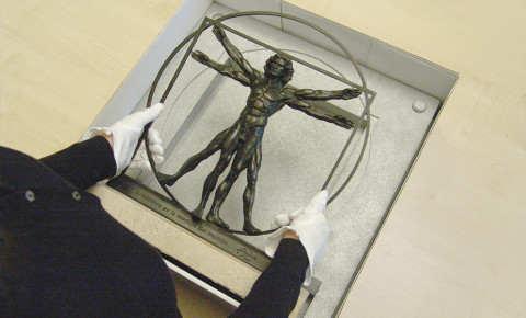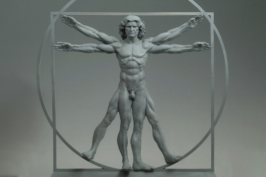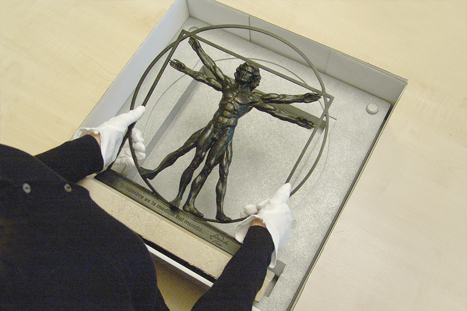 La escultura en bronce del dibujo más famoso de Leonardo da Vinci es una homenaje a la belleza de la proporción humana. Realizada en bronce mediante la técnica a la cera perdida, se apoya sobre una peana de mármol travertino y lleva inscrita la frase de Leonardo “El hombre es la medida del mundo”. Además, cada pieza ha sido numerada a mano.