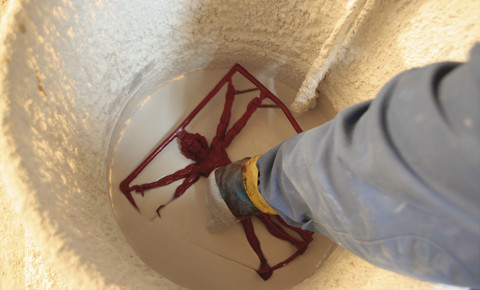 - Inscripción de una frase de Leonardo da Vinci grabada en la pieza de bronce